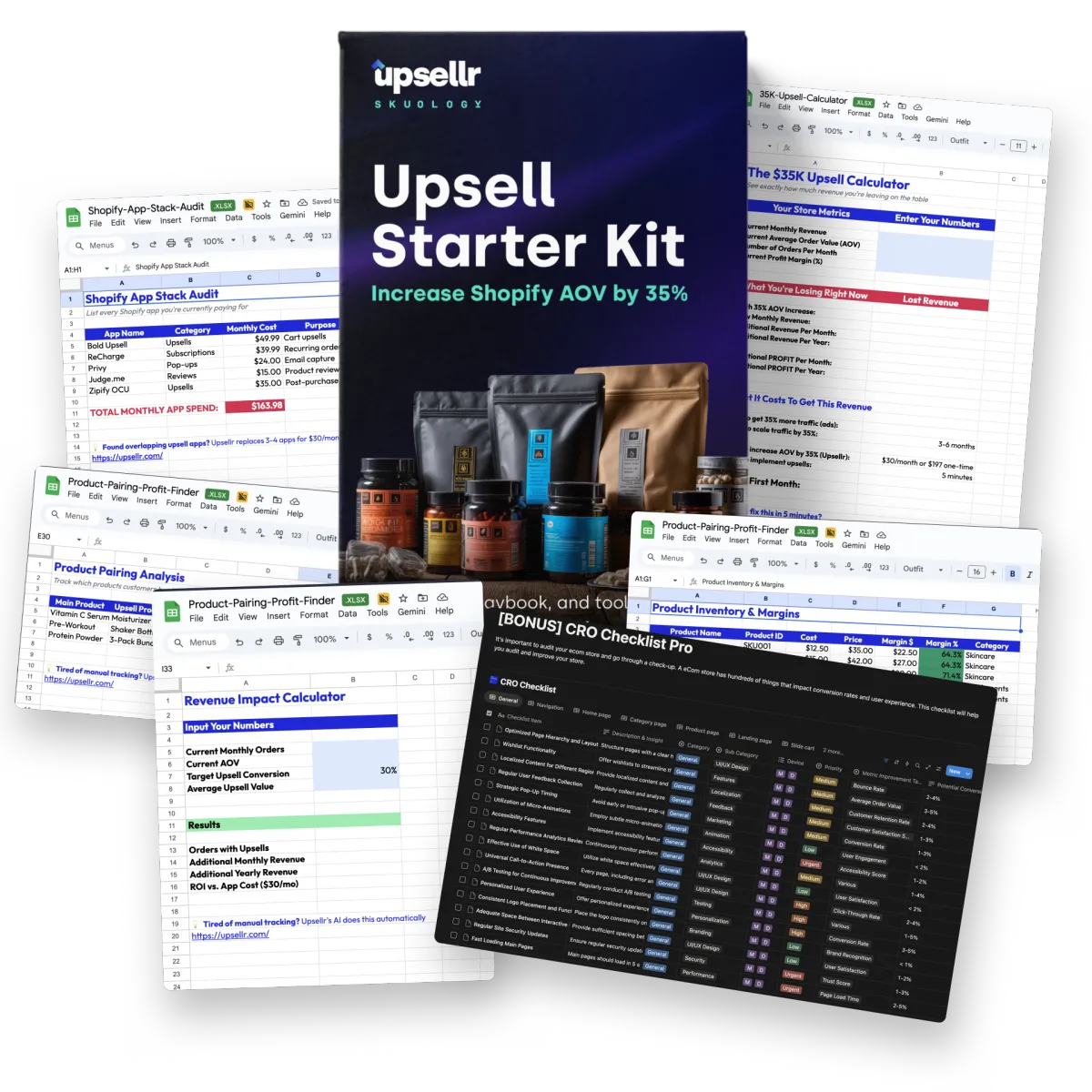 Google Sheet template that helps you identify your most profitable upsell combinations: